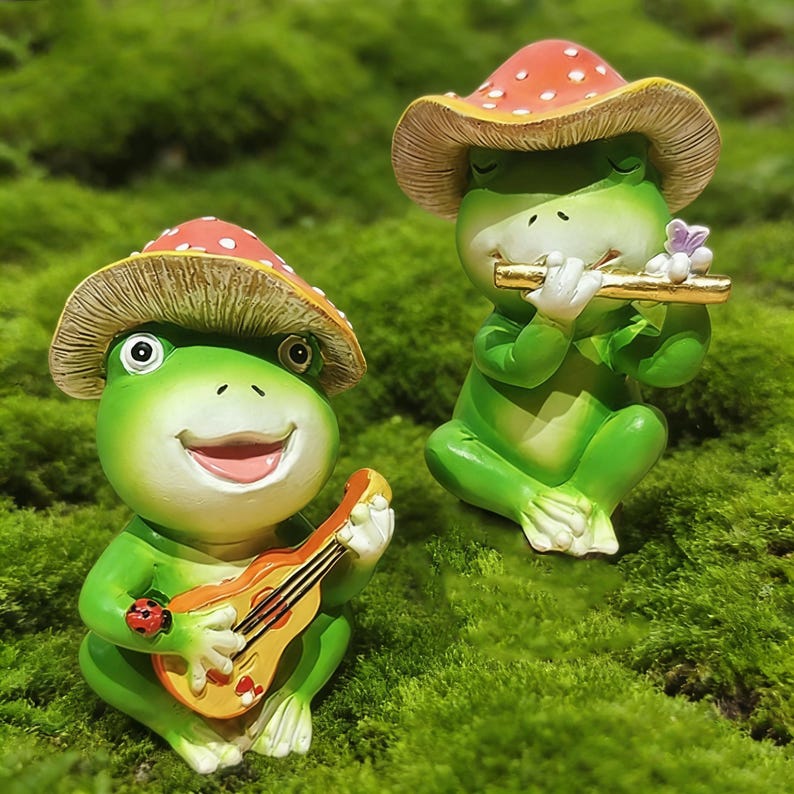 Resin Frog Band Garden Statue, Miniature Frogs Fairy Garden Figure, Farmhouse Yard Ornament, Funny Lawn Sculpture Decor, Music Lovers Gift.