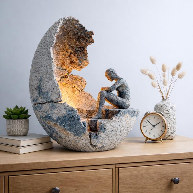 Each sculpture is specially designed as a conceptual art piece and completed through hours of hand-applied surface work and artistic finishing. The rough, eroded textures and muted tones are intentional, reflecting impermanence and decay.